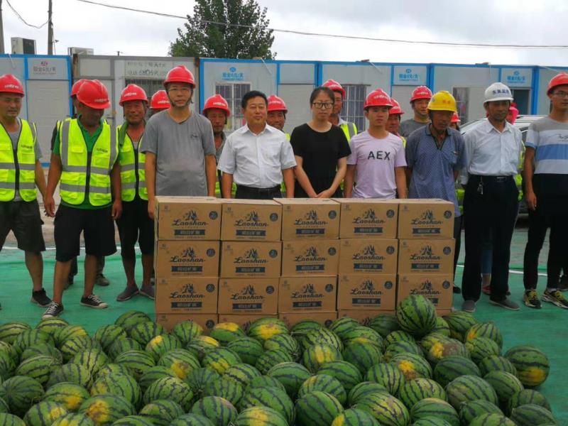 7月19日,莱西市总工会启动2019年度“夏送清凉”活动。由班子成员带队,分四组走访慰问了莱西市部分在建重点项目户外作业、高温作业的一线职工、农民工,送去西瓜、矿泉水等防暑降温物品,助力重点工程建设。