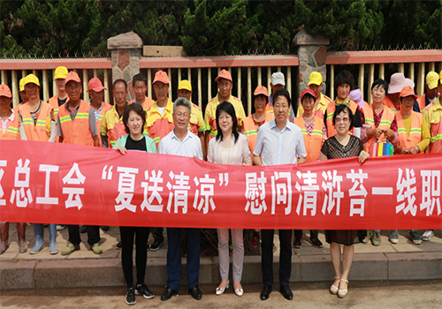 进入暑期以来,青岛旅游迎来旺季,尤其是市南区的客流迅猛增长,给城市管理、秩序维护、市场监管工作带来极大的压力和挑战,环卫、绿化、市政等一线工人,公安、交警、综合执法等一线执法人员冒高温、战酷暑,加班加点坚守在工作岗位上,为维护城区的形象不辞劳苦。工会作为职工的娘家人,在维护好职工合法权益的同时,通过送清凉活动,表达对一线工作人员的慰问和关爱,同时也倡导大家从自身做起,尊重劳动,文明出行,保护环境,爱护家园,为建设美丽城市做出积极贡献。