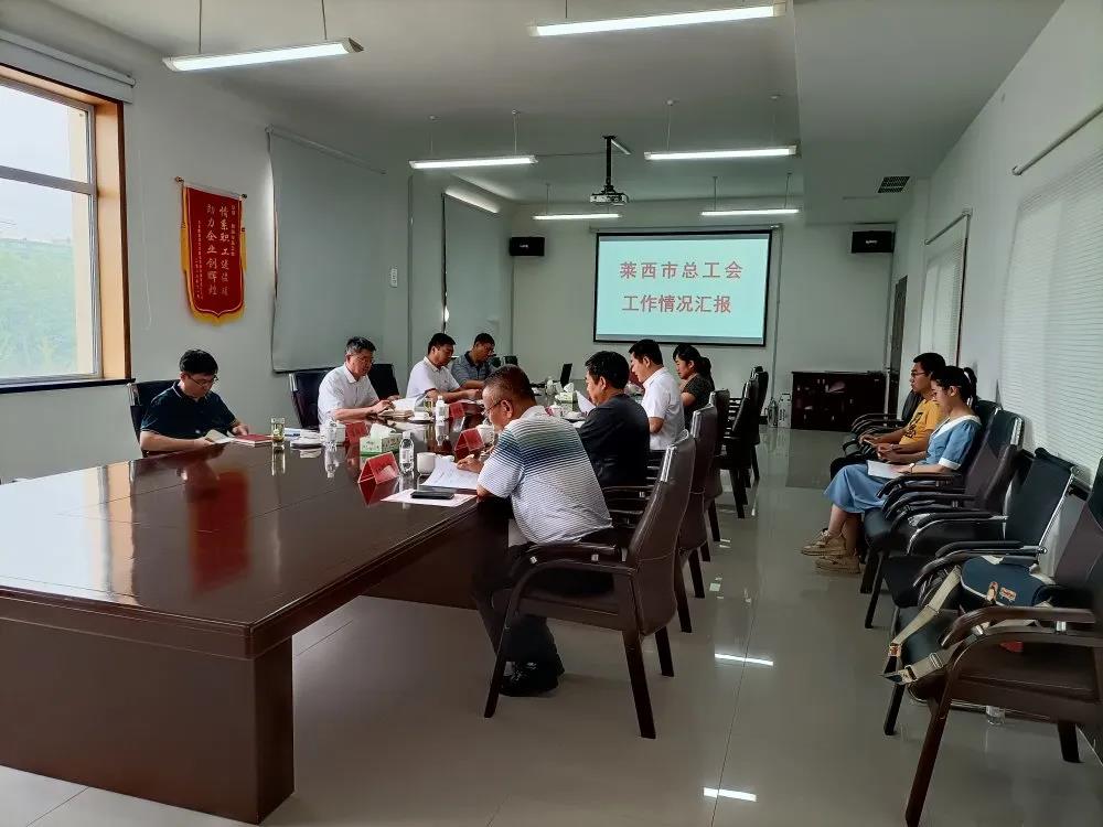 彭建国在莱西市总工会三楼会议室听取了莱西市总工会工作情况汇报。隋庆九对青岛市总工会的大力支持表达了衷心的感谢,并汇报了上半年工作目标完成情况,重点介绍了探索新时期工人文化宫服务职工的路径、志愿者队伍建设、齐鲁工惠APP认证等十项重点创新性工作。