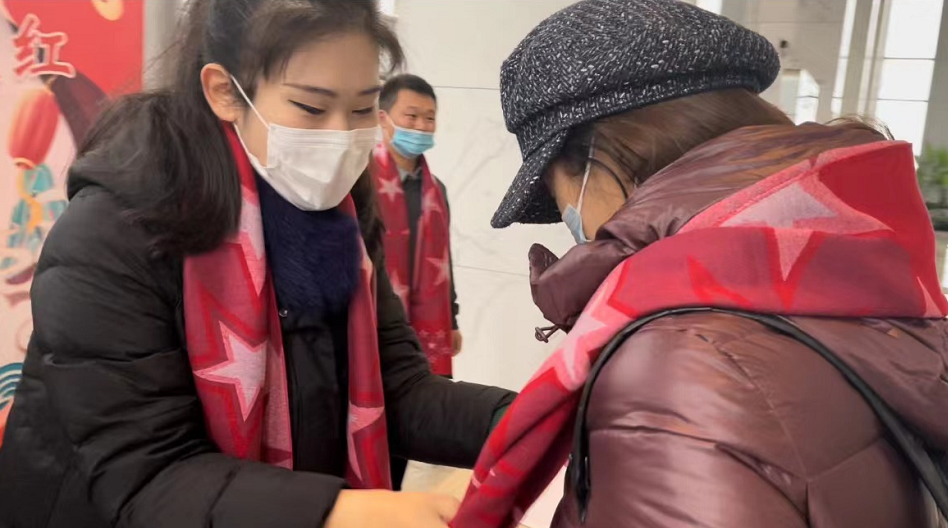 2月7日是春节后上班第一天,青岛市崂山区上实中心T3、杰正财富大厦(上实中心T11)、大荣中心、全球(青岛)创投风投中心、国际创新园B座、巨峰创业大厦、金石馆等7座“亿元楼宇”的职工们刚刚迈入办公楼,就被崂山区总工会志愿者们上门开展的“有围有爱 新年走红”暖冬行动现场吸引住,专业设计的工会文创“红围巾”在新春开工的喜庆氛围中格外耀眼,不少职工领取后主动拿出手机通过自媒体平台打卡留念,分享上班第一天喜获“头彩”红围巾的温暖。