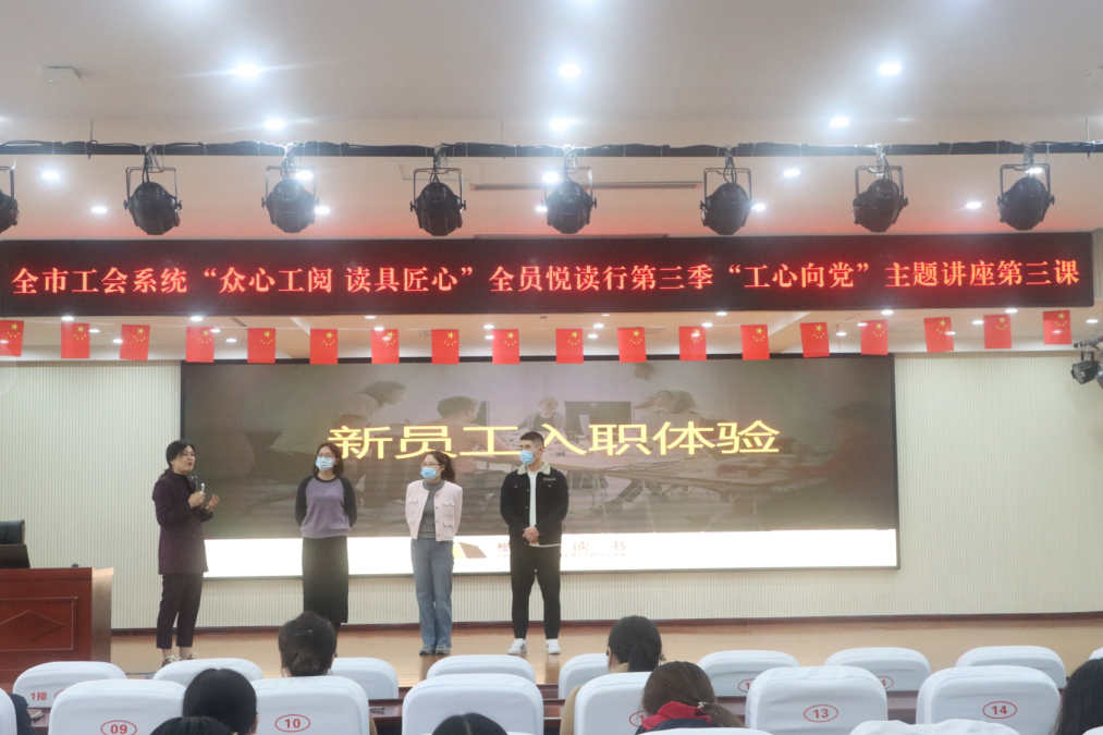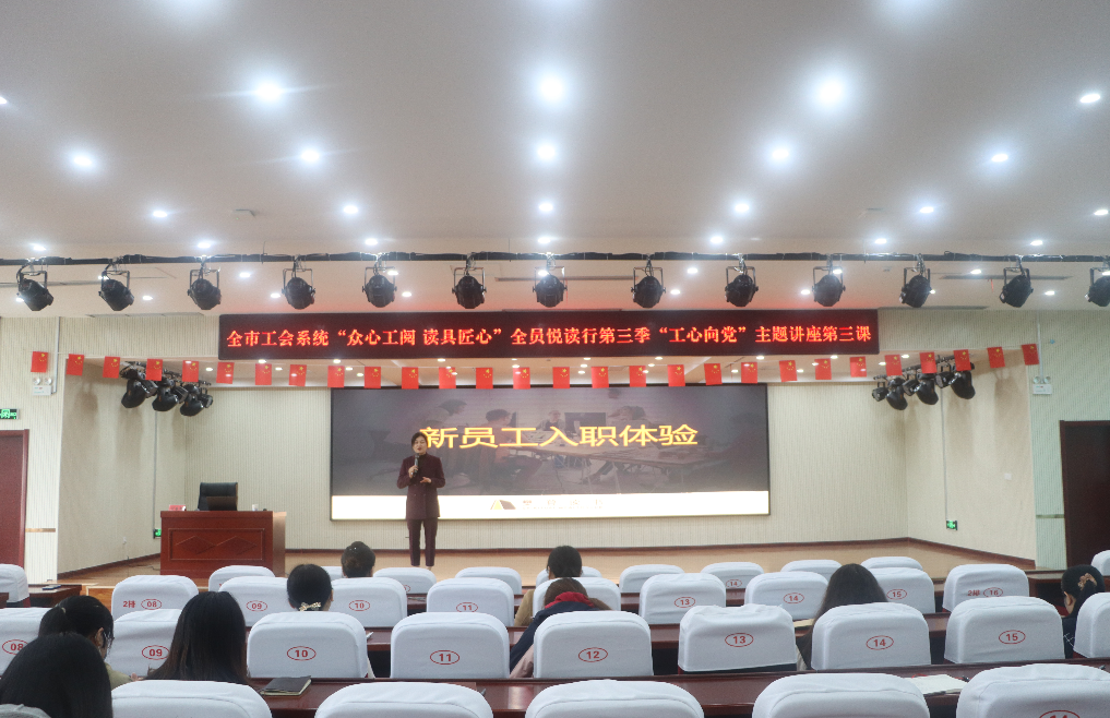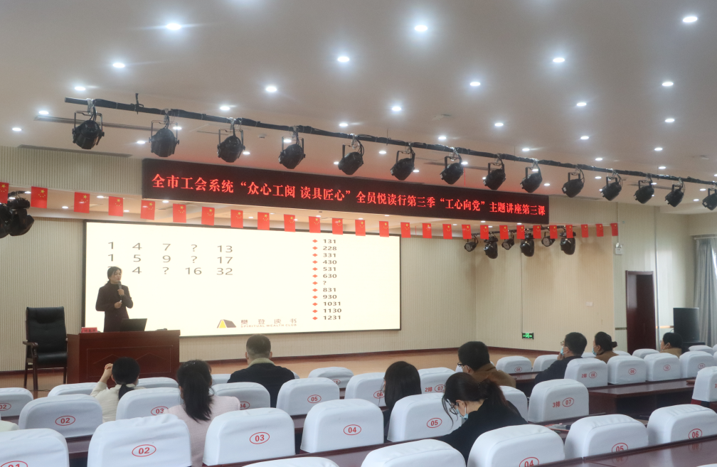 11月11日,平度市工会系统“众心工阅 读具匠心”全员悦读行第三季“工心向党”主题讲座第三课在平度市工人文化宫五楼报告厅举办,讲座邀请中国家庭教育指导师、美国正面管教协会认证家长讲师、樊登读书会平度服务中心负责人付春颜讲授《非暴力沟通——远离暴力化解职场冲突》。