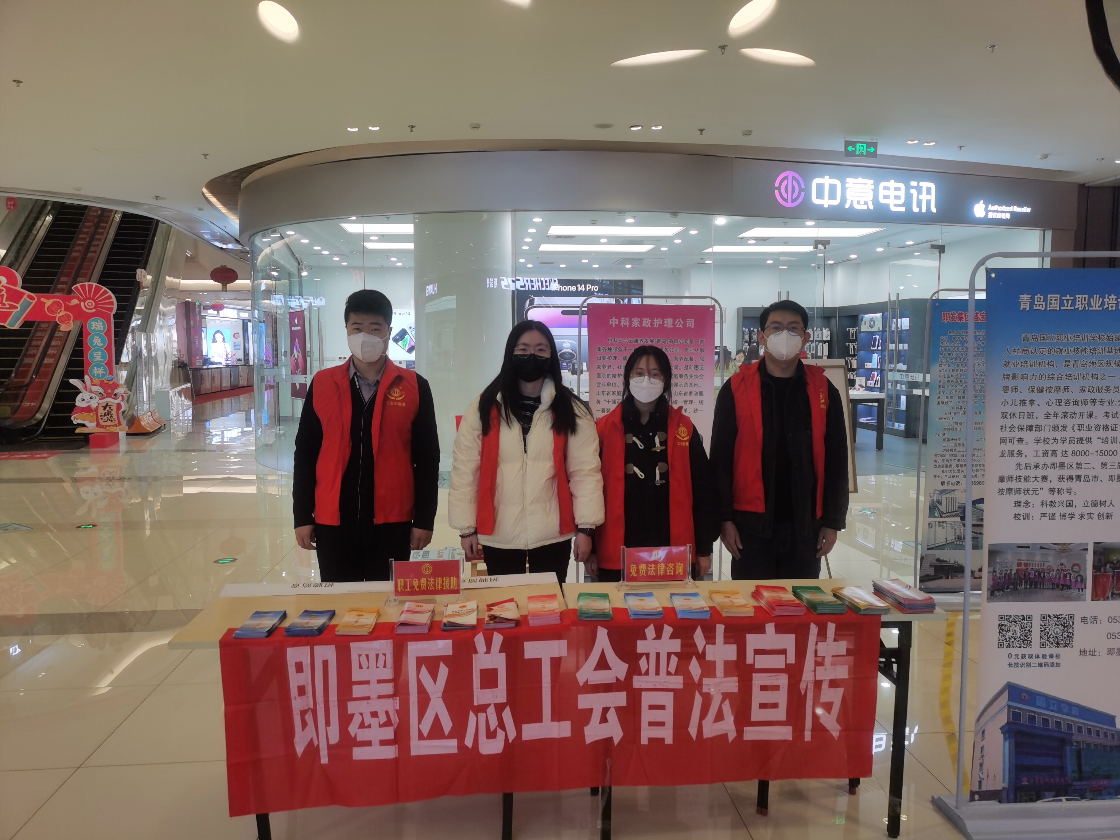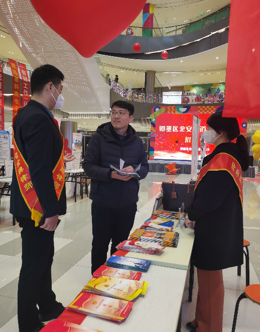 春节过后正值农民工返程务工高峰期,为进一步增强广大求职者的法律意识和维权意识,提升知法、学法、懂法、用法的能力,即墨区总工会以“2023春风行动”专场招聘会为契机,连续三天在招聘会现场开展“尊法守法·携手筑梦”普法宣传行动,推动农民工权益维护活动,促进全区劳动关系和谐社会稳定。