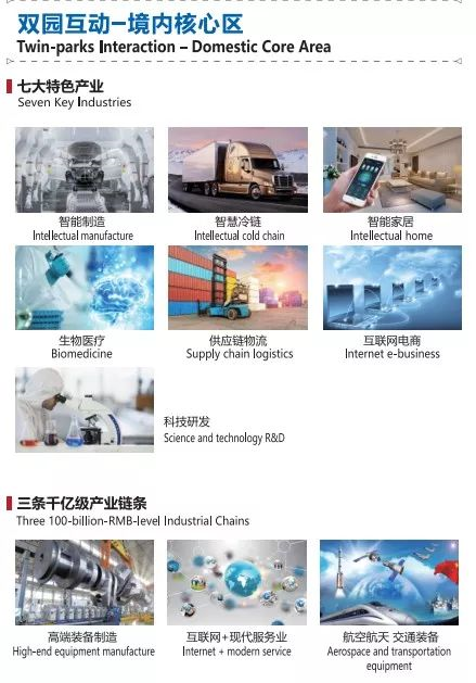 在境内,该园区面向上合组织国家打造物流贸易加工制造先导区,重点发展现代物流业、现代国际贸易、加工制造业、现代服务业、公共服务业等五个产业集群。
