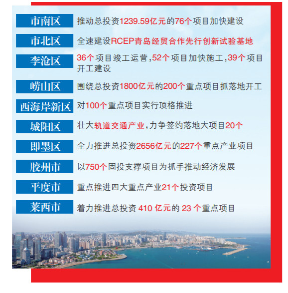 2021年是青岛市的“项目落地年”,也是“十四五”的开局之年。青岛十区市围绕市委市政府“项目落地年”的战略部署,牢牢抓住项目建设这个“牛鼻子”,加快推进重点项目建设,用项目建设挺起高质量发展“硬脊梁”。