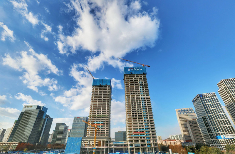 在李沧区信联天地项目9-2-2办公地块建设现场,建设高度186米的3号楼已完成主体封顶,正在进行二次结构施工、设备安装等工作,这里将成为李沧区的第一高楼。与此同时,1、2、4、5号楼基本完成各项建设内容,200余名工人放弃春节休假,全力向竣工冲刺。