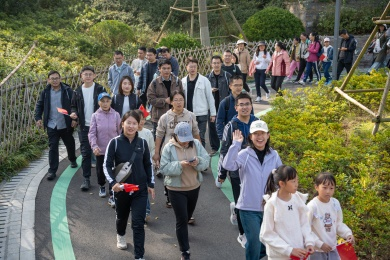 活动当天,秋高气爽,浮山森林公园披上五彩斑斓的秋装。上午9点,参与职工及家属在公园入口集合签到,领取能量补给包。在充分热身和安全提示后,健步走活动正式拉开序幕。
