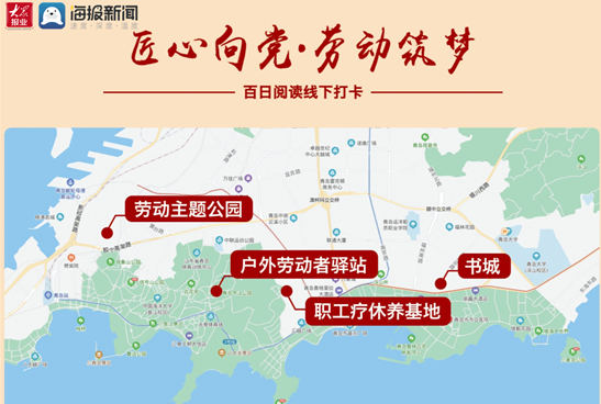 “匠心向党·劳动筑梦”百日阅读打卡活动以线上线下方式开展,职工按要求参与打卡、集阅读印章。线上活动主要通过“齐鲁工惠·青岛行”手机客户端上传读书照片打卡收集电子阅读印章;线下活动分为劳动主题公园(上海路6号市工人文化宫院内)、户外劳动者驿站(文登路28号中山公园站)、职工疗休养基地(东海一路25号湛山花园酒店院内)、书城(香港中路67号书城前广场内)4个线下打卡点,职工按要求在阅读主题拍照区手持现场KT板拍照打卡转发朋友圈、集阅读印章,可获得一份阅读活动纪念品。青岛市总工会建立了参与次数(时间)前100名的阅读排行榜,参与次数前100名者可获得职工阅读活动纪念品。(纪念品领取联系电话:15315527867 15020097975)