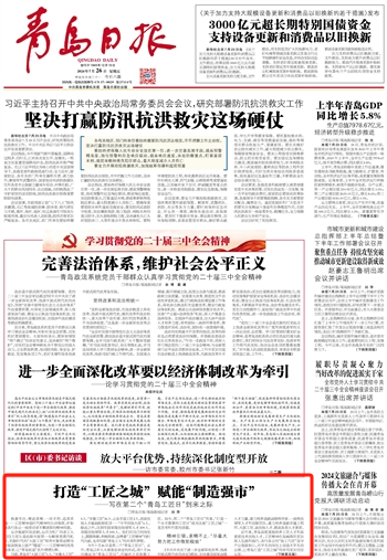 “择一事终一生”的执着专注,“干一行专一行”的精益求精,“偏毫厘不敢安”的一丝不苟,“千万锤成一器”的追求卓越……在青岛这片创新创造的热土上,广大劳动者传承“工匠精神”,团结奋斗、孜孜不倦,建功“工匠之城”,必将为谱写中国式现代化建设“青岛新篇章”作出更大贡献。