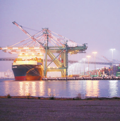 美国洛杉矶港今年10月的货运量同比下降19%。图为洛杉矶港集装箱口岸。 |
