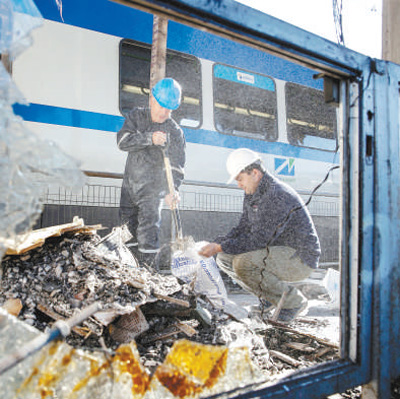 10月21日,在智利瓦尔帕莱索,工作人员清理被示威者破坏的地铁站。 |