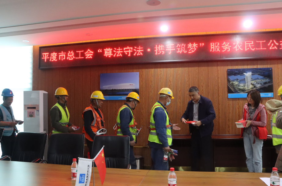 “尊法守法携手筑梦”法治宣传服务深入工地现场与农民工面对面普法,广泛宣传《条例》,同步开展法律咨询服务,为农民工、新经济新业态从业者等及时提供帮助。职工们纷纷表示《条例》颁布的很有意义,并表示此次宣传增长了他们的法律知识,明白如何通过法律维护自己的合法权益。