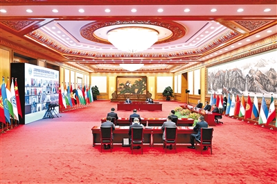 7月4日下午,国家主席习近平在北京以视频方式出席上海合作组织成员国元首理事会第二十三次会议并发表题为《牢记初心使命 坚持团结协作 实现更大发展》的重要讲话。 |
