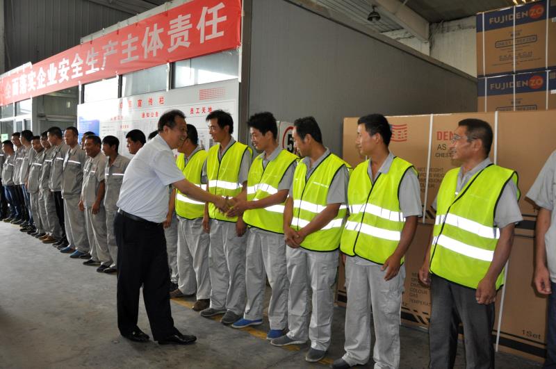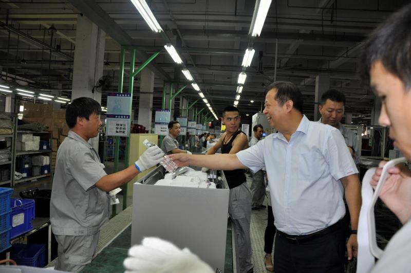 股份公司党委书记、工会主席黄卫东一行先后来到家电事业部制造分公司冰箱车间、冷柜车间、物流分公司仓库和超低温生产车间,向奋战在生产一线的职工发放了矿泉水、防暑降温药箱等慰问物品。每到一处,黄书记都代表公司党委、工会对大家表示深切慰问和诚挚的感谢,与现场一线职工认真交谈,了解生产、生活情况和防暑降温等情况,叮嘱大家注意生产质量安全和自身防暑保健,要求相关负责人做好一线工作人员的安全和防暑降温措施,保证好日常饮食、饮水安全和医疗保障措施,把防暑降温工作深入到每个班组、每个岗位,为广大一线职工营造良好的工作及生活环境。