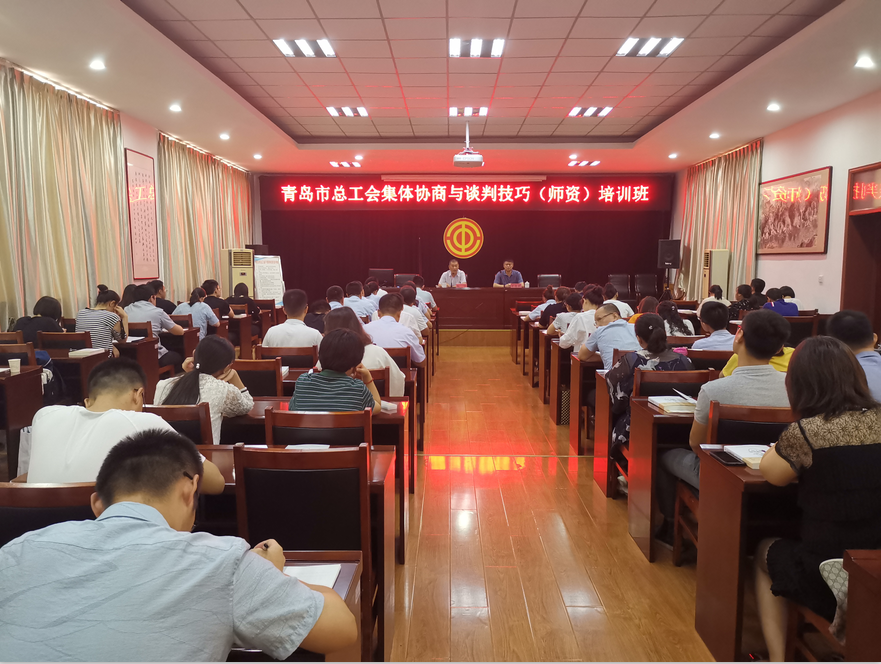 为深入开展集体协商深化提升年活动,广泛传播“促进企业发展、维护职工权益”的中国特色集体协商工作理念,提高工会干部集体协商相关理论、法律法规、政策和实际操作水平,打造工会集体协商专家团队。 2019年8月13日至8月16日,青岛工会集体协商与谈判技巧(师资)培训班在市总干校举办,全市76名工会干部、专职指导员参加了本次培训。青岛市总工会副巡视员阮丁出席开班仪式,市总权益保障部部长于常明主持。