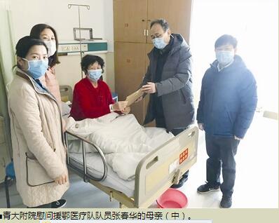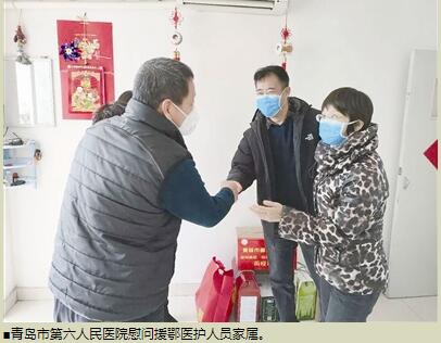 青岛市第八人民医院护士韩娟告诉记者,医院领导会定期到家中走访慰问,不仅每次都带去了慰问品,还详细询问家里有什么困难需要医院解决,“我们刚到武汉时,这里的初春潮湿阴冷,但来自大后方的关心支持却如阳光般温暖、如春风般和煦。让武汉人民尽早过上健康正常的生活是我们最大的愿望,也是我们矢志不渝的奋斗目标,我们一定会在战胜疫情后平安地返回青岛。”