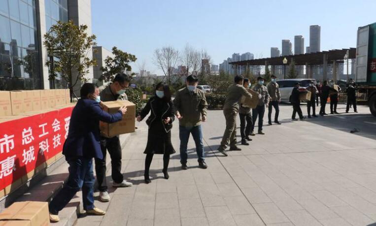 在武汉人民齐心协力阻击新冠肺炎疫情的关键时期,青岛市总工会向武汉市总工会捐赠防护口罩五千只,同时携手青岛惠城环保科技股份有限公司捐赠杀菌器两万五千只,共计180万元的物资支援武汉市总工会开展疫情防控工作,携手并肩,共克时艰。 3月11日上午,在青岛西海岸新区惠城广场举行捐赠仪式。