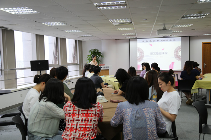 此次培训理论教学和实际操作相结合,茶艺师首先从茶文化讲起,阐述了茶叶种类、茶具、茶艺礼仪和茶水冲泡技能等理论知识,随后演示了红茶的泡制礼仪、技巧和方法,详细的给大家示范并讲解了茶具摆放的位置,茶器移动的顺序及路线以及向客人敬茶、奉茶的礼节、顺序和动作等。
