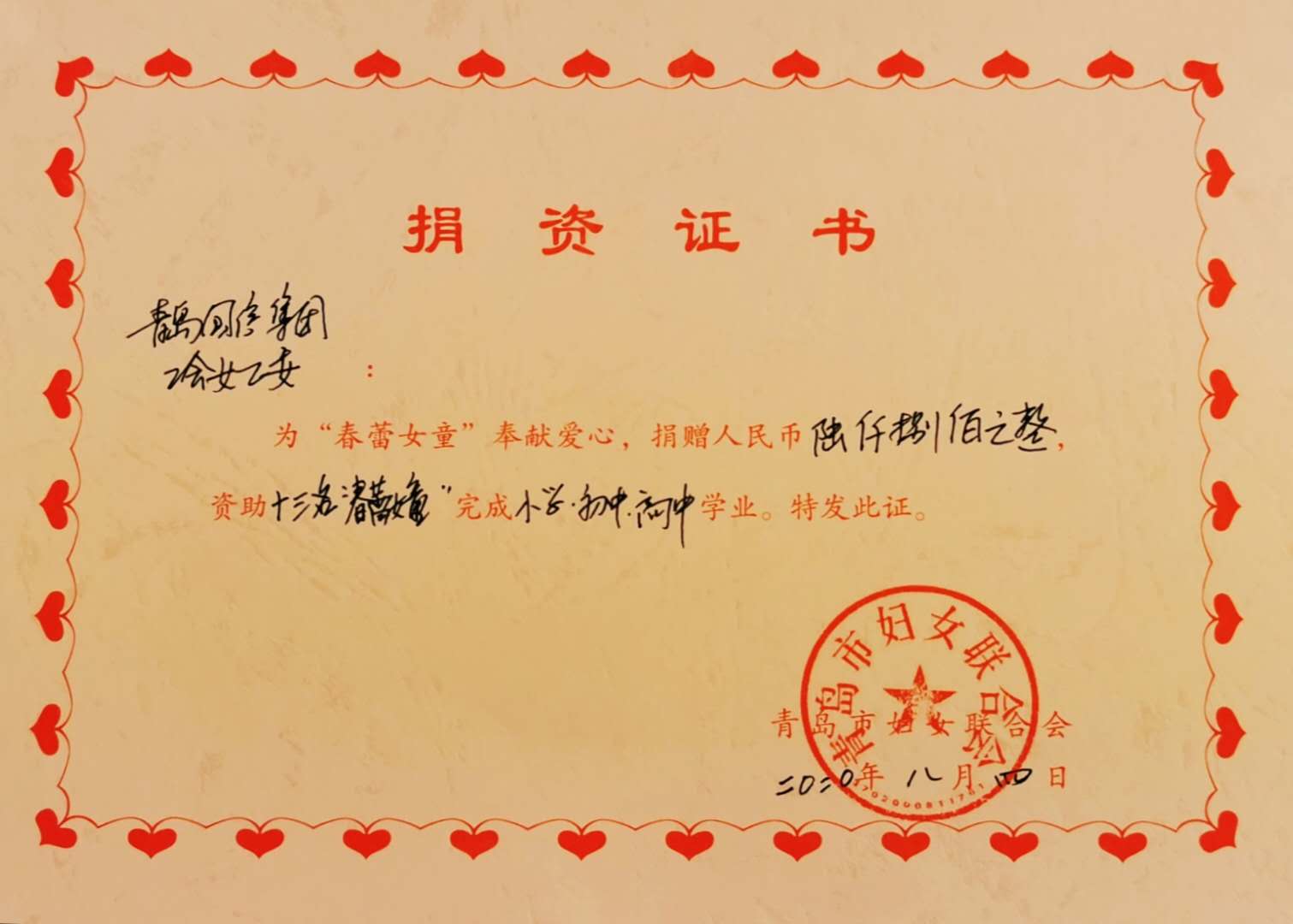 为积极响应青岛市妇联实施的“春蕾计划”,国信集团组织开展了“春蕾女童”助学活动,发动集团干部员工为平度市崔家集镇“春蕾女童”捐款。