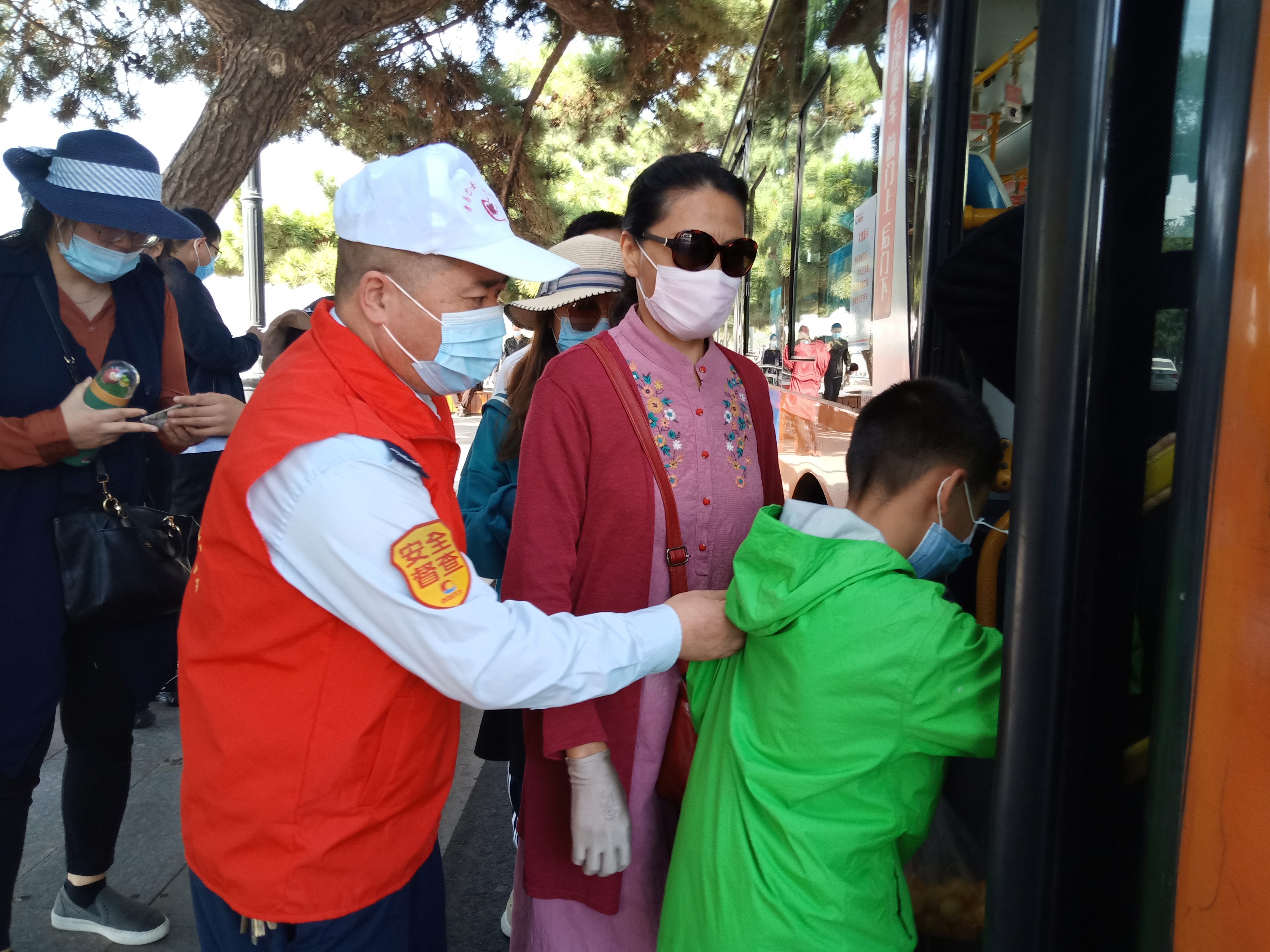 据了解,这五名志愿者均来自青岛公交集团市北巴士公司“红叶红”工会志愿服务队,引导乘客排队有序上下车、帮扶老幼、清理栈桥沙滩上的垃圾是他们的主要工作。
