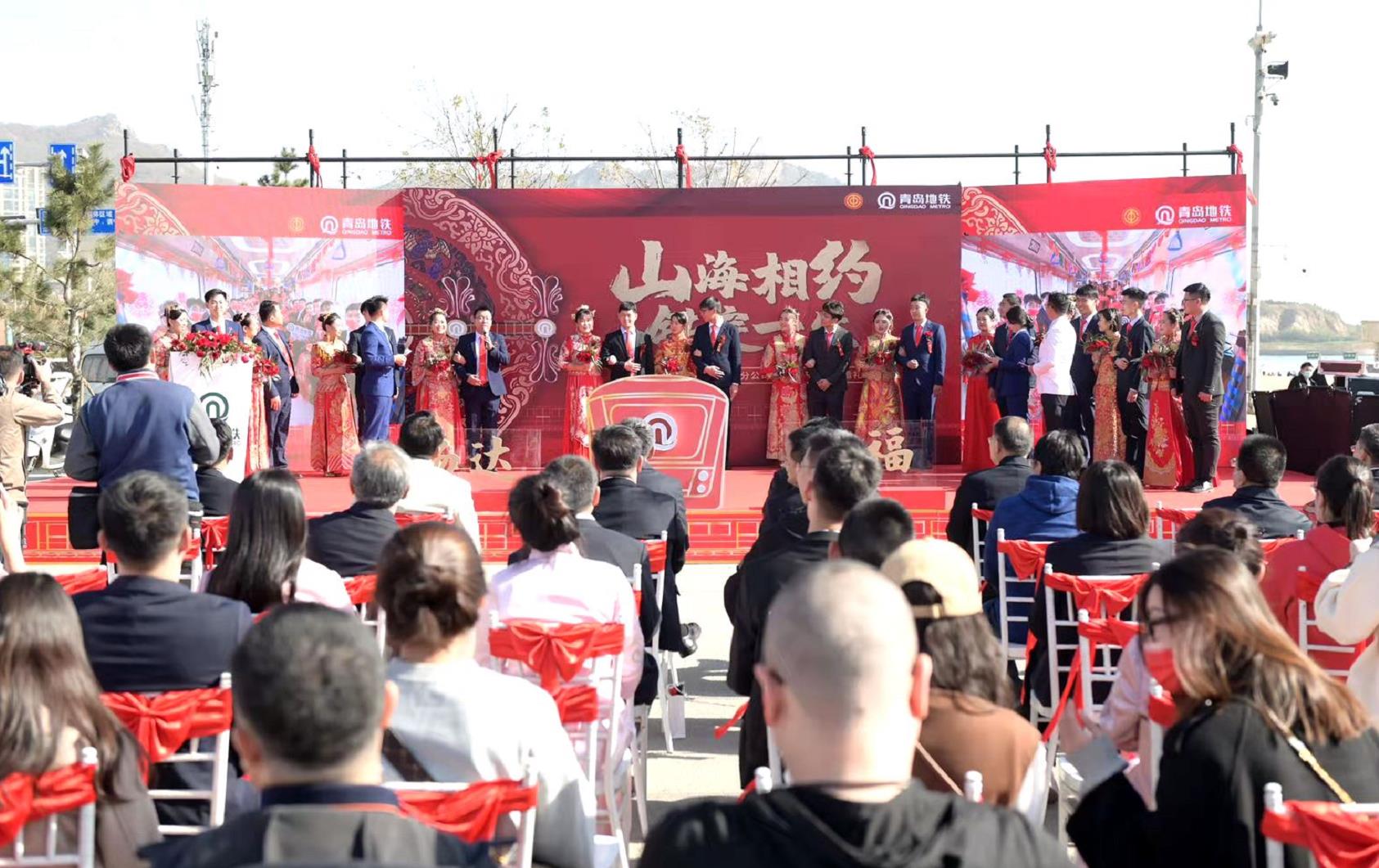 此次集体婚礼还创新设置接亲迎亲环节,将中国传统婚礼习俗与地铁特色元素深度融合,推出婚庆主题列车,并在11号线博览中心站举行接亲迎亲仪式,以山为媒,以海为鉴,将山海美景融入婚礼流程,通过穿越山海鉴证海誓山盟,用新婚、新人传递出青岛地铁畅达幸福的愿景、使命、价值观,共同定义国潮婚礼新风尚!
