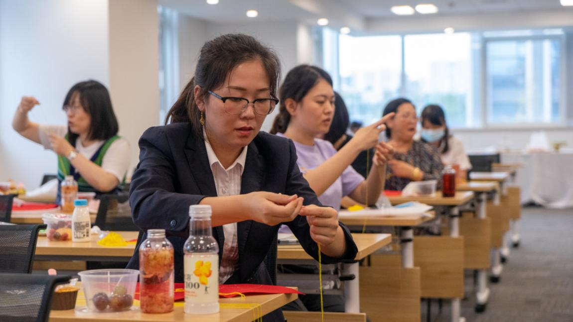 参加活动的女职工每人绣制小红旗,一只小小的绣花棚子,一块红布,一枚绣花针,一把丝线,大家用一针一线将坚定的信念从指尖“绣”入心田,用“一针一线致敬建国72周年”的情感。