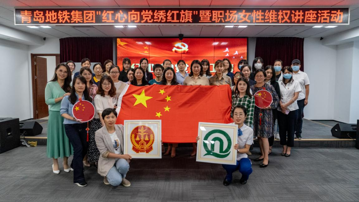 活动伊始,青岛中院的赵玉霞法官结合新《民典法》为大家讲解了“职场女性维权及婚姻家庭热点问题”。让在场的女职工们充分地了解了工作和家庭中所存在的问题,并深刻地理解了如何解决这些问题的方式方法。伴随着《绣红旗》歌声的响起,地铁集团和中院女职工把对党和祖国的热爱与真情化在针里,融入线中,在红旗上饱含深情地绣下属于自己的一针一线,绣上拥护党、忠于党、热爱党的浓浓之情,绣出女职工热爱祖国的拳拳之心。