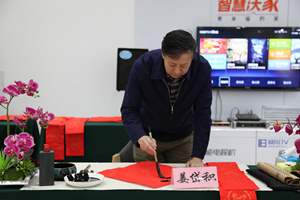为深入学习宣传贯彻习近平新时代中国特色社会主义思想和党的十九大精神,抒写新时代、凝聚正能量,为广大人民群众送上新春祝福和文化大餐。2月6日上午,青岛市总工会主办,职工文体中心承办的“送万福、进万家”书法志愿服务公益活动在山东路联通营业厅火热进行。