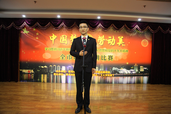 6月19日下午,由青岛市首届职工文化艺术节组委会主办,市职工文体事业发展中心承办的“中国梦·劳动美——学习贯彻习近平新时代中国特色社会主义思想和党的十九大精神”全市职工演讲比赛”决赛,在青岛市工人文化宫举行。(青岛市总工会 出席比赛,并为获奖选手颁奖。)这次演讲比赛是全国总工会在全国统一组织的比赛活动,也是今年青岛市职工文化艺术节中的首个单项比赛,获得了各基层单位、职工朋友们的热烈欢迎,参赛单位共102家,报名人数达185人,创历年之最。