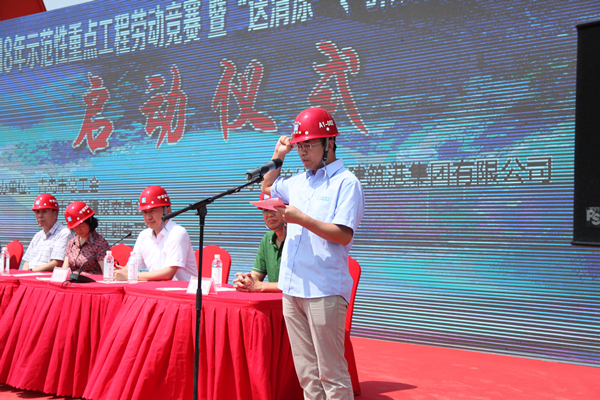 7月20日上午,青岛市2018年重点工程劳动竞赛暨送清凉、群众性“查保促”活动启动仪式在中建筑港集团有限公司承建的青岛地铁8号线(B1包)土建01工区隆重举行。