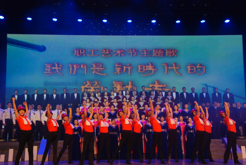 “咱们工人有力量,新时代创造新辉煌。……”伴随着青岛市职工合唱团、交运集团职工合唱团、青岛公交集团职工合唱团、市南区文化馆共同演绎的开场歌舞《我们是新时代的劳动者》,正式拉开本场文艺展演的序幕。