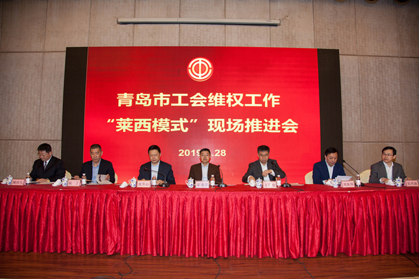 3月28日,青岛市工会维权工作“莱西模式”现场推进会在莱西市召开。这次会议是市总工会贯彻落实王东明同志、李玉赋领导同志对莱西工会维权工作的批示要求,贯彻市委“精兵强将攻山头,典型引路稳阵地”两条主线和市总工会十四届二次全委会精神,总结莱西维权经验,推广“莱西维权模式”,进一步加强全市工会维权工作的重要举措。省总工会副主席王际仓和市总工会、中共莱西市委的领导出席会议。各区市总工会主要负责同志、分管负责同志、法律工作部门负责人,部分镇街总工会主要负责同志,工会法律服务律师团律师代表等共100余人参加会议。