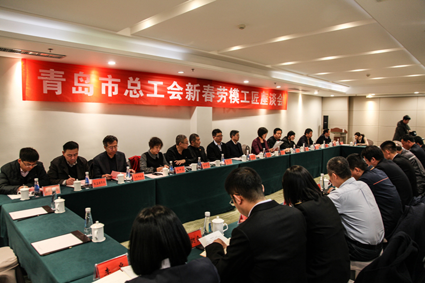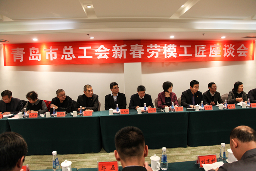 1月24日,市总工会召开2019年新春劳模工匠座谈会,对全市劳模工匠进行春节慰问,会议邀请全市各条战线上的十四名一线劳模工匠畅谈我市改革开放40年来工人阶级的发展进步,听取劳模工匠对产业工人队伍建设改革和工会工作的意见建议。市总工会党组书记、常务副主席彭建国出席并讲话,市总工会副主席李丽代表市总工会介绍2018年工作情况和全国工会第十七次代表大会、山东省工会第十五次代表大会和青岛市工会第十四次代表大会精神,市总工会经审委主任逄京林主持会议,市总工会副主席孙更新、副巡视员阮丁、副巡视员王爱民和相关部门负责人参加座谈。