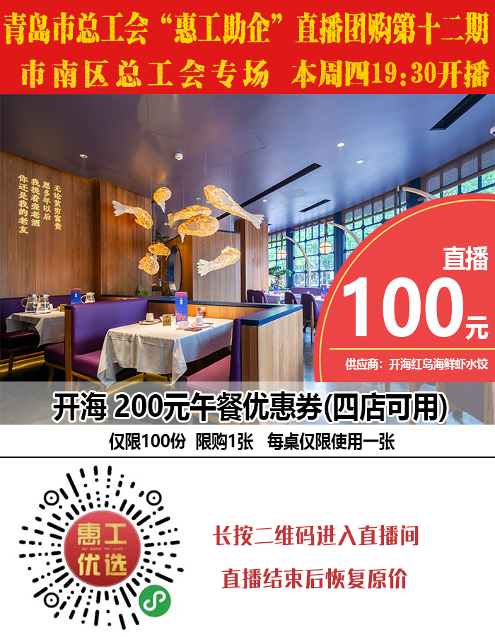 (1)青岛市总工会“惠工助企”直播团购不收取品牌商任何费用,费用全部让利于百万职工;