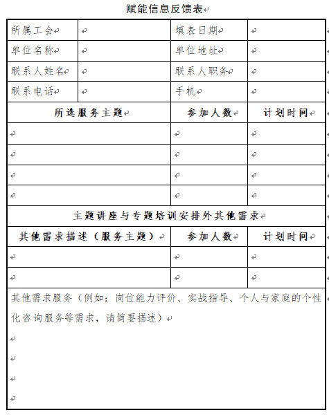 《赋能信息反馈表》请联系青岛市第二工人文化宫索要后下载填写。