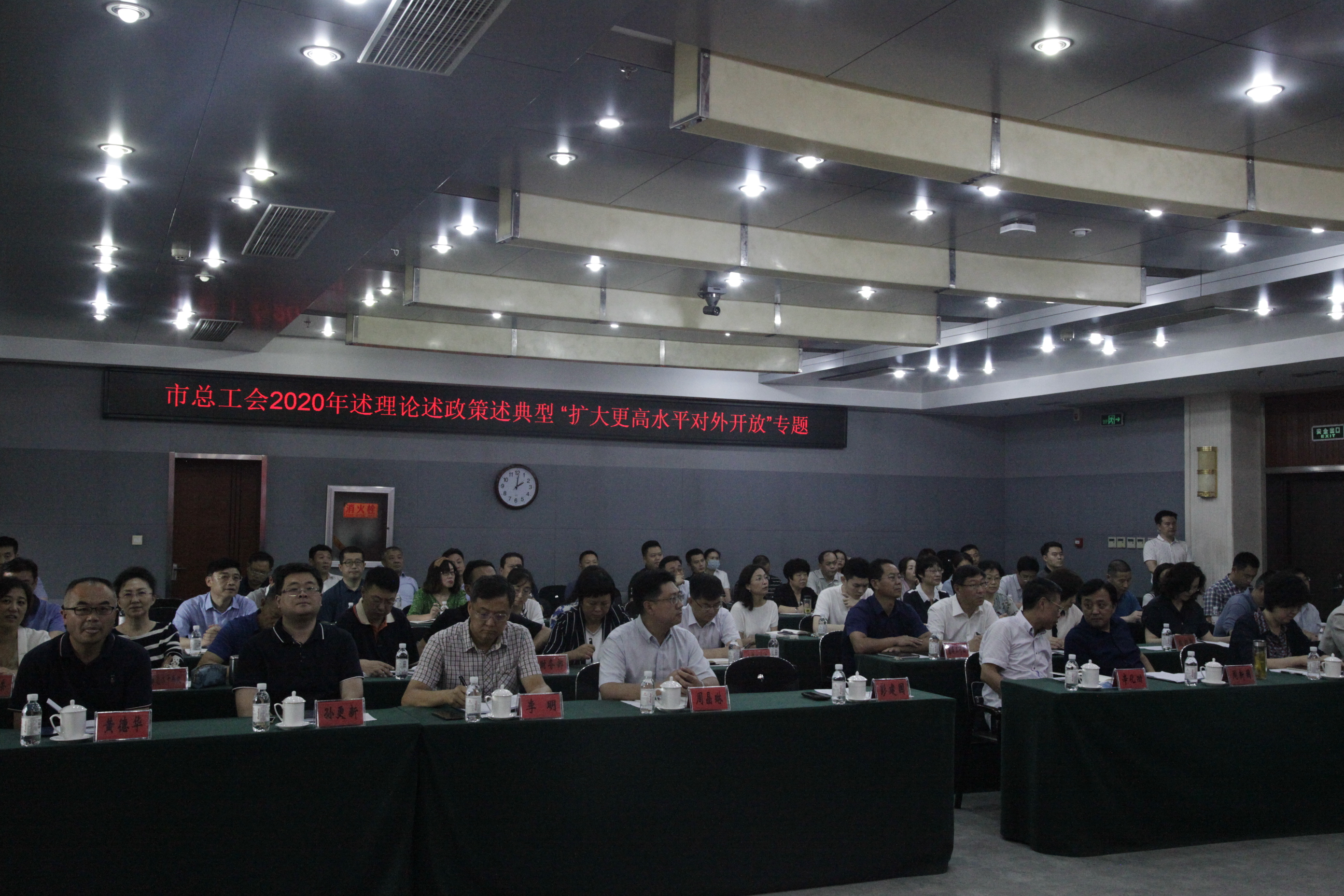 为进一步树立开放思维、坚定开放步伐,认清开放差距、查摆开放难题、增强开放能力、提高开放水平,按照市委组织部《关于开展“扩大更高水平对外开放”专题“三述”的通知》要求,7月15日下午,市总工会召开了2020年“扩大更高水平对外开放”专题“述理念、述政策、述典型”汇报会。市纪委、市监委第六派驻组副组长辛化功同志、市考核办四级调研员周晶琳同志莅临指导,市总工会党组书记、常务副主席彭建国主持会议并作总结讲话。