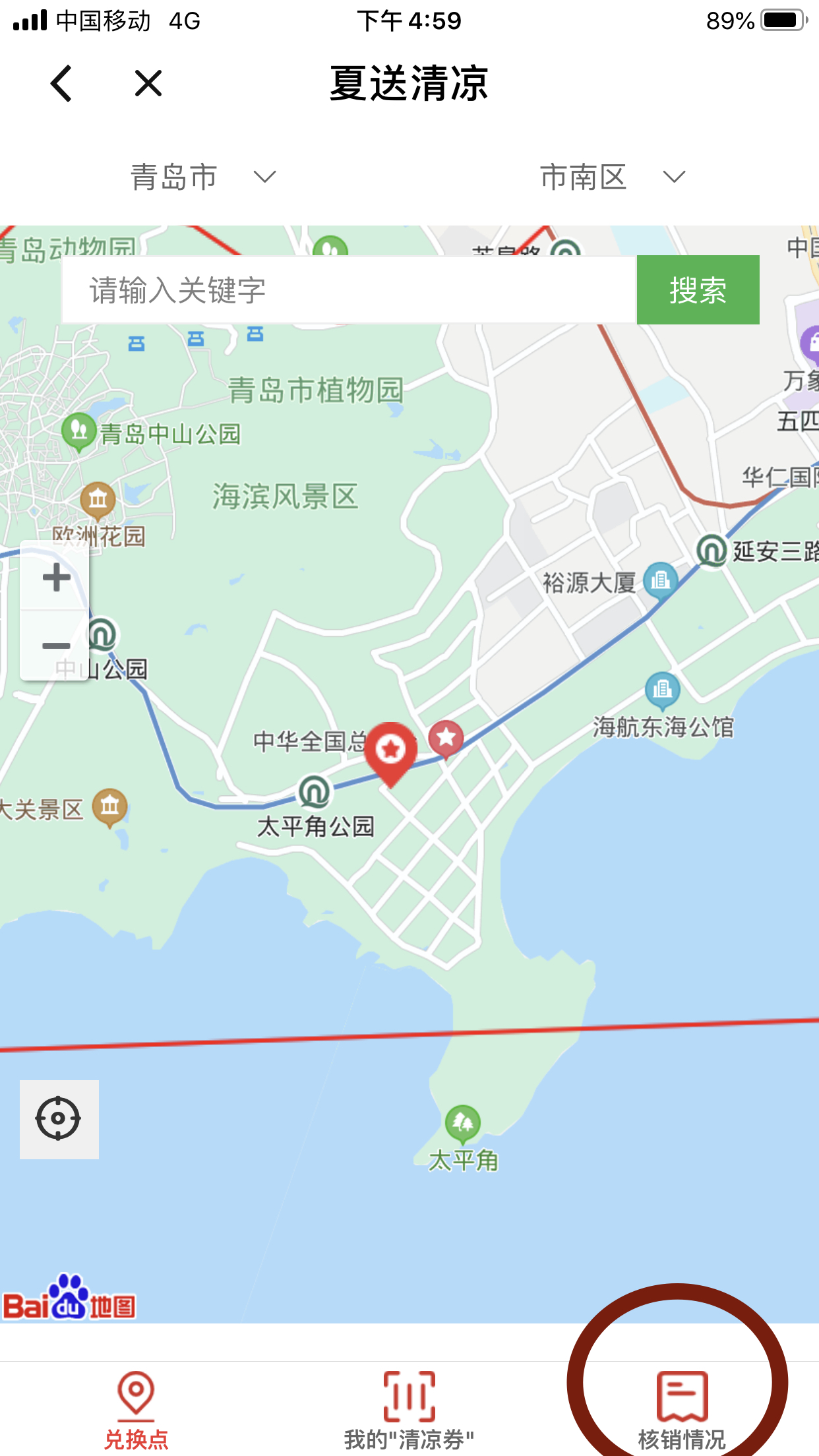 点击我的“清凉券”按钮,出示“清凉券”由驿站站长核销后,方可领取清凉物品(如下图所示)。