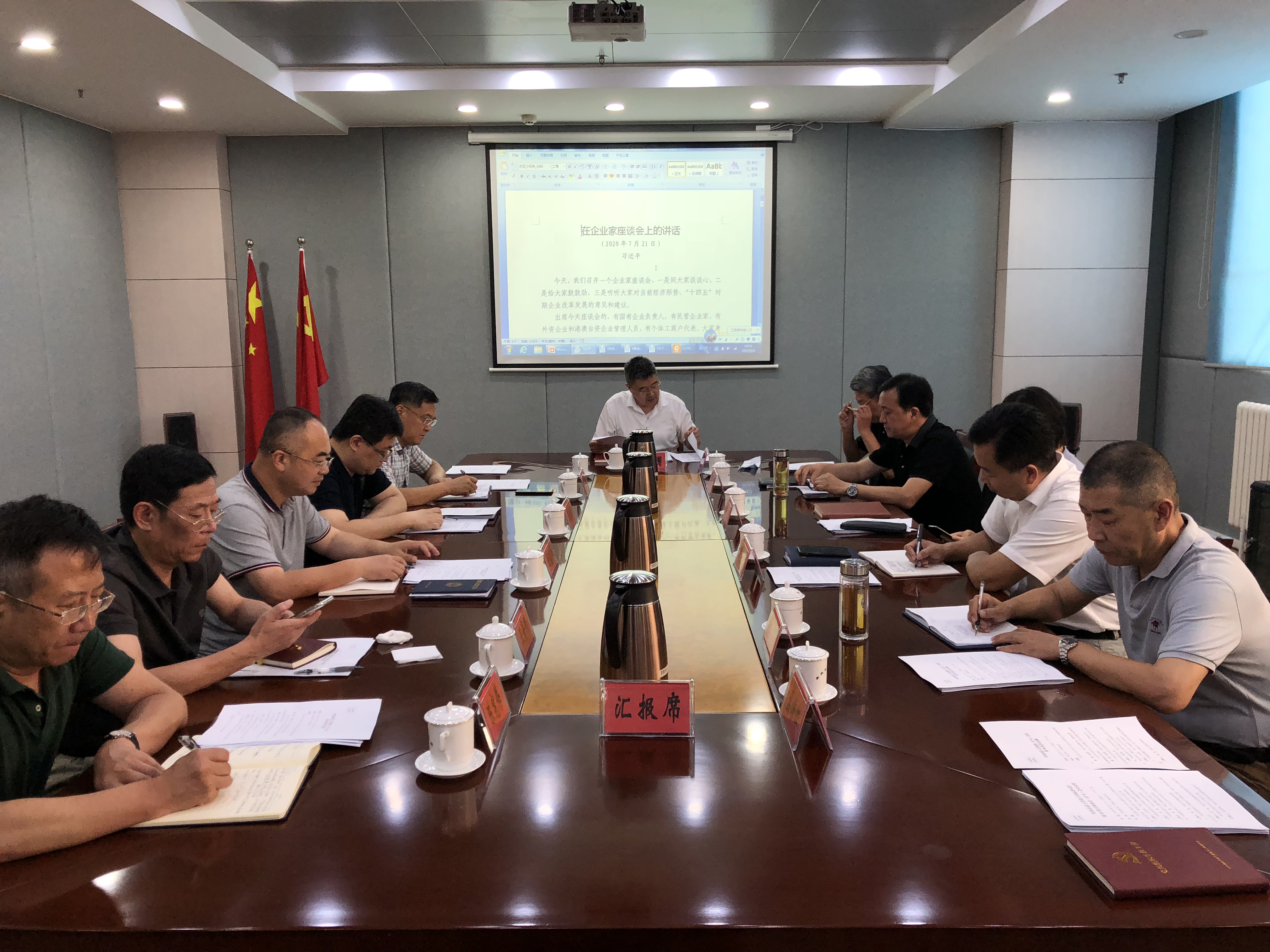 8月4日,市总工会党组理论学习中心组召开扩大会议,学习习近平总书记在企业家座谈会上的讲话,省委常委、市委书记王清宪署名文章《在常态化疫情防控中统筹稳增长转动能》。市总党组成员参加会议,副局级领导干部、副巡视员、一级调研员、机关部门负责人和各直属事业单位负责人列席会议。