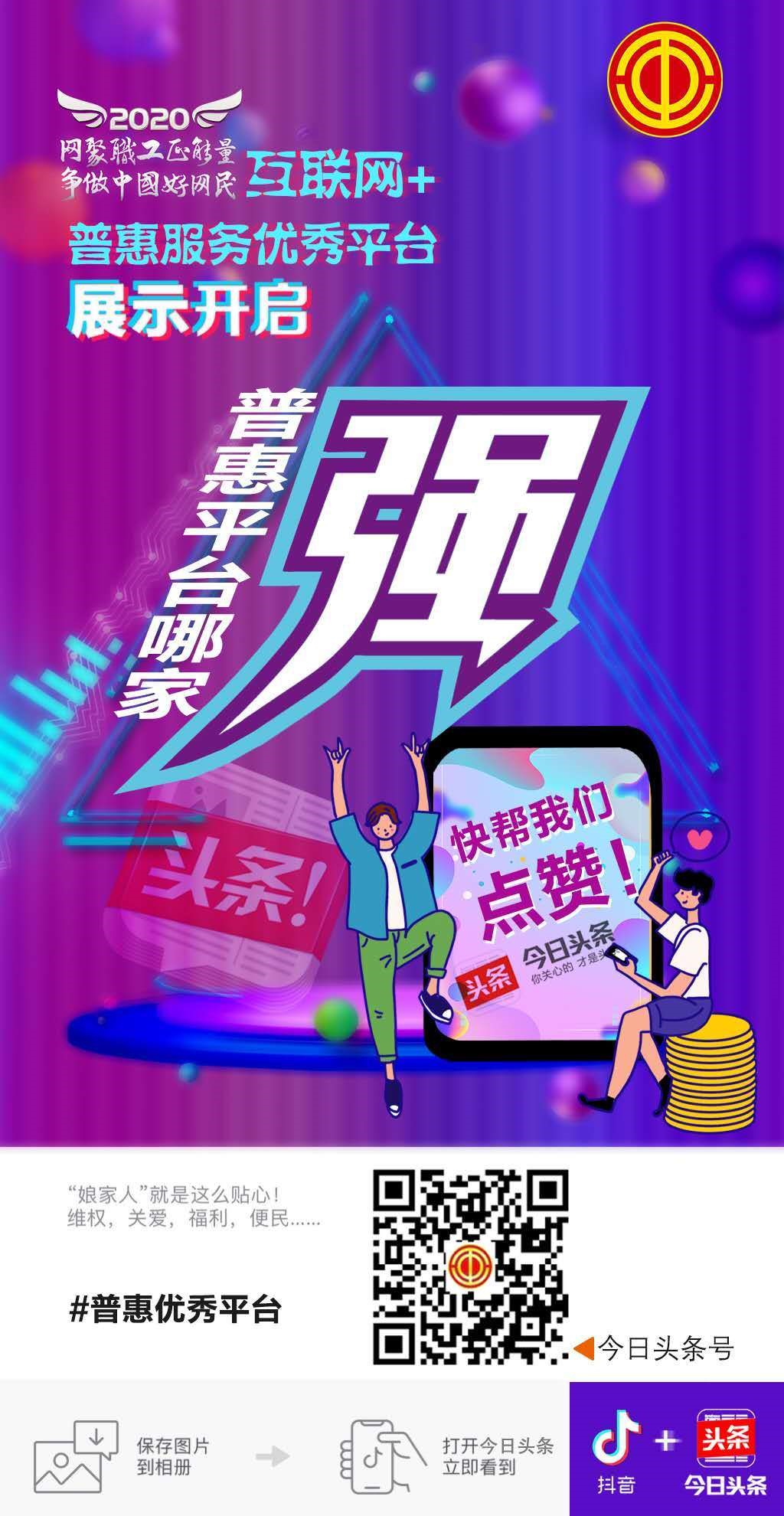 2、保存下图到相册(打开“今日头条”立即看到)或在今日头条搜索“厦门工会”进入厦门工会头条号主页,在搜索栏输入“青岛市总工会”,为“青岛市总工会‘互联网+普惠平台’展示”评论、点赞、分享!