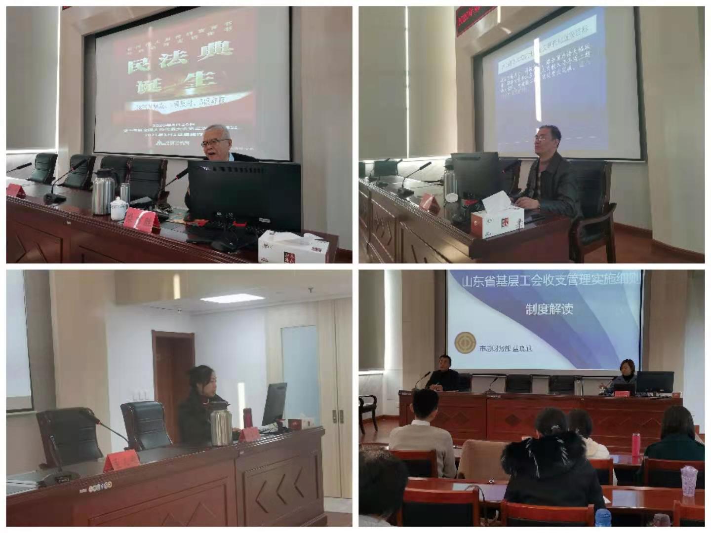 培训班邀请市委党校敬志伟、柴方胜教授分别就十九届五中全会精神、《民法典》做了专题讲座。市总财务部、资产部、经审办工作人员及会计师事务所专业人员就工会固定资产管理、工会预算管理、工会财务监管、基层工会收支管理、工会审计政策、工会预算执行审计业务等内容进行了专题讲解。同时,培训班还组织学员观摩了工人文化宫阵地建设情况,并进行了EAP心理测试等。