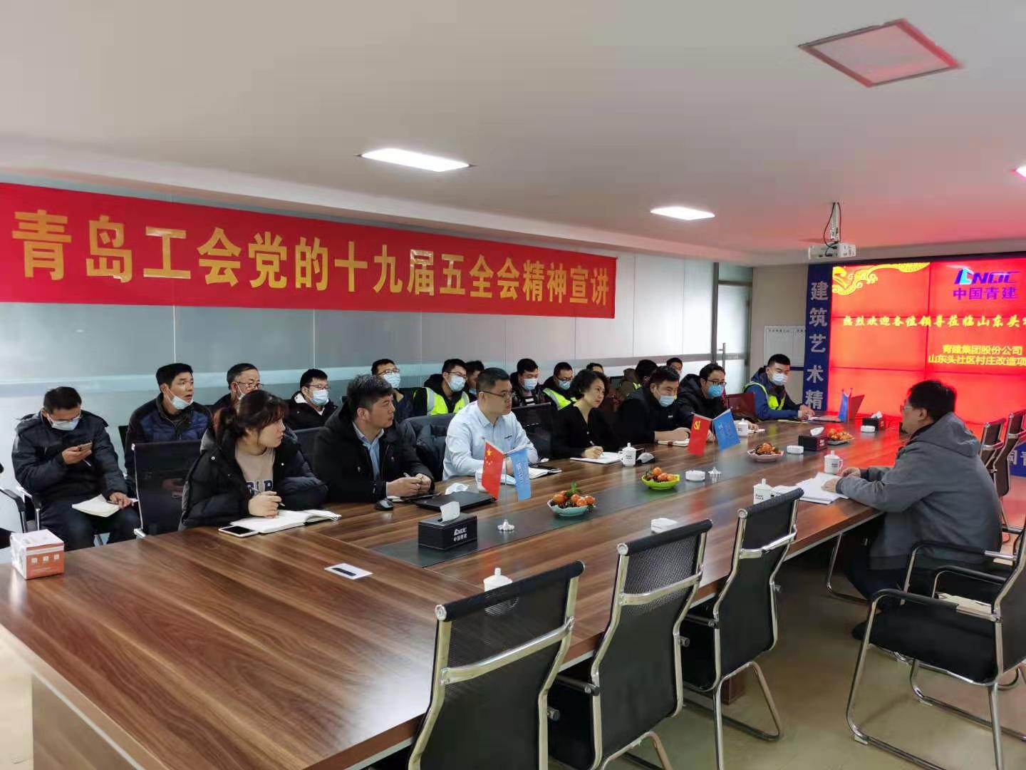 党的十九届五中全会,是在我国将进入新发展阶段、实现中华民族伟大复兴正处在关键时期召开的一次具有全局性、历史性意义的重要会议,青岛市总工会将学习宣传贯彻好五中全会精神作为当前和今后一个时期重要政治任务,组建百人宣讲团,聚焦十强产业、新经济业态等领域,针对不同行业特点、不同企业,开展差异化、精准化、分众化宣讲。市总工会领导结合工作实际,带头宣讲党的十九届五中全会精神,推动全会精神在基层入脑入心、落地见效,激发全市职工群众干事创业的激情和干劲。