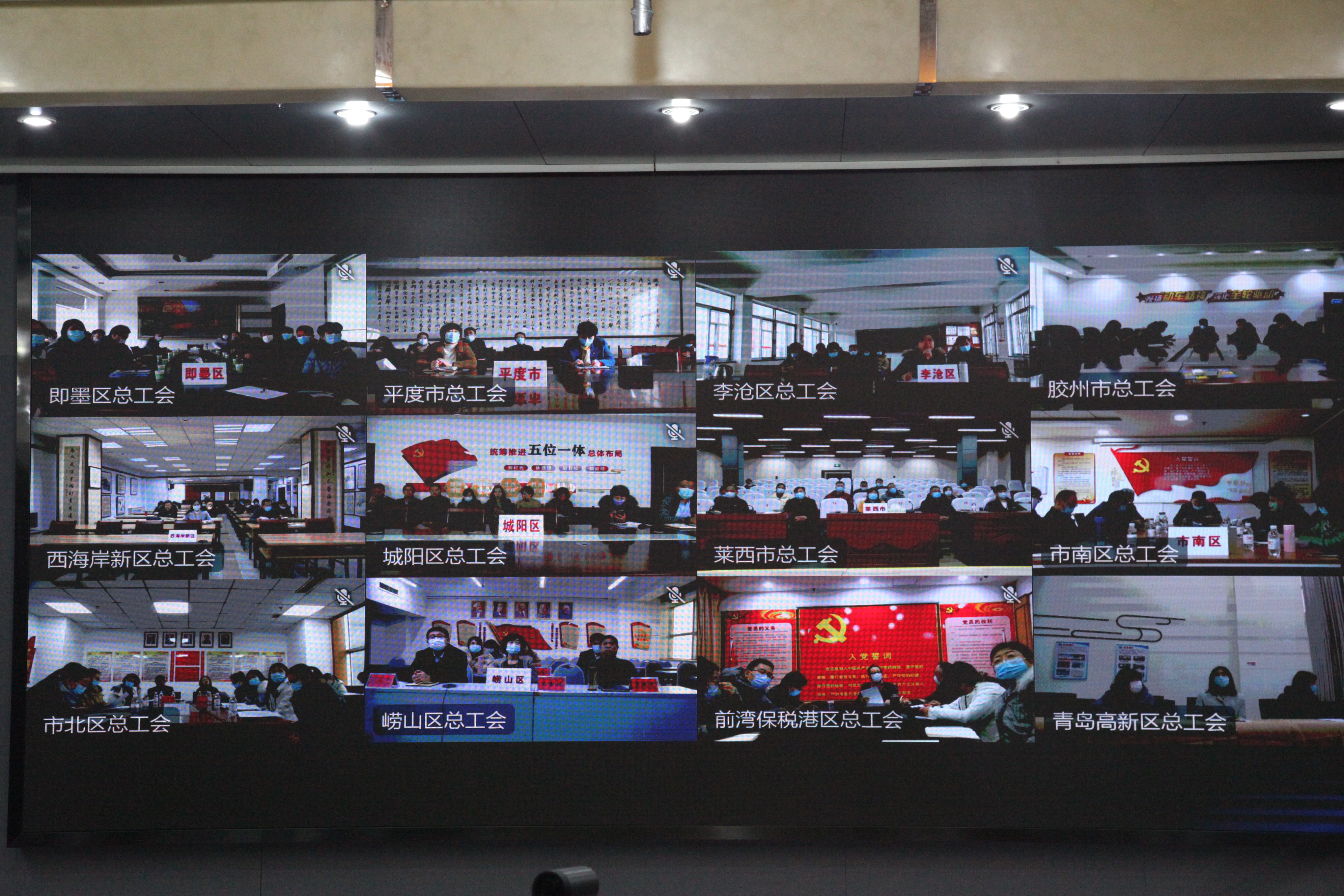 据悉,为积极配合国家七部门开展的“迎新春送温暖、稳岗留工”专项行动,青岛市总工会于近期推出专项慰问关怀资金、组织外来务工人员疗养体检、线上送岗位送技能等十大“暖心行动”,鼓励外来务工人员留青过节,支持企业稳岗留工。由于这十大措施涉及面广,准备时间紧张,因此市总采用视频会议形式第一时间召集各区市、镇(街)总工会,及时解答政策落实过程中的疑虑,进一步推动该项工作在全市工会系统内迅速铺开。