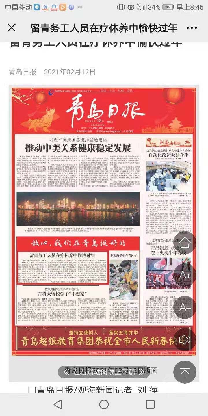 大众日报、工人日报、青岛日报、今日头条、蓝睛等新闻媒体相继报道湛山疗养院春节期间为留青职工开展的健康体检和疗休养工作,给予高度肯定。