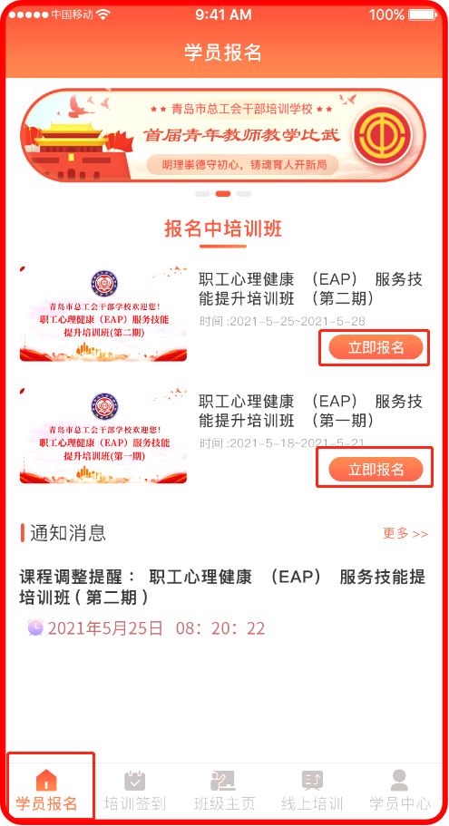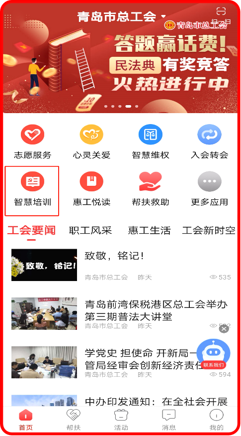 6月7日,青岛市总工会干部学校“智慧培训”平台在“齐鲁工惠APP”正式上线启用。“智慧培训”平台充分融合大数据、人工智能等现代科技技术,打造“线上+线下”相融合的培训模式, 实现了报名信息智能化、学员服务精细化、培训管理高效化,推动工会干部培训工作不断创新发展。