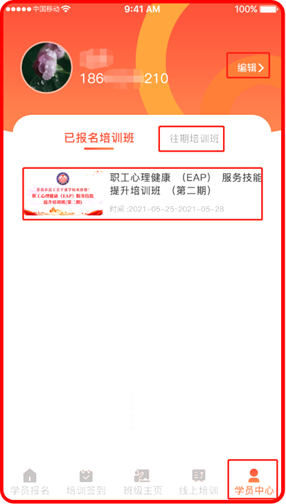 “学员中心”板块可以轻松实现个人信息编辑,查看报名情况、下载培训资料等功能,为结束培训的学员提供课程共享渠道,以便于进一步夯实学习成效、提高教学质量。