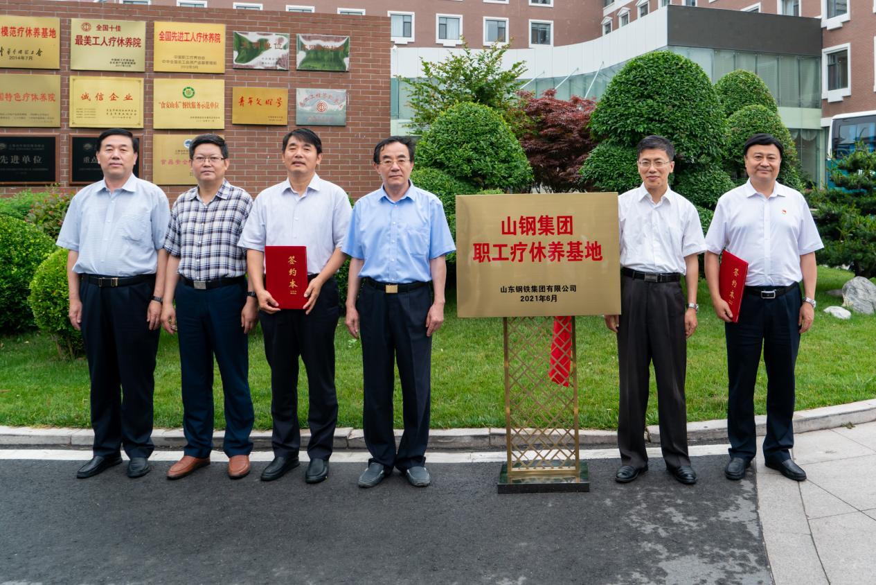 6月17日上午,山东钢铁集团有限公司和青岛湛山疗养院举行职工疗休养基地揭牌暨合作协议签署仪式。山钢集团党委副书记、董事苏斌,山钢集团党委委员、工会主席卢彤书,青岛市总工会党组成员、经审委主任邹杰,青岛湛山疗养院党委书记、院长毛勇出席仪式。