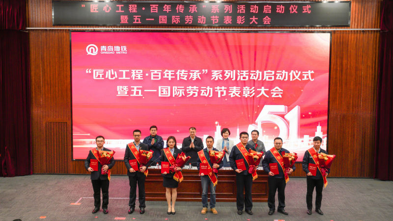为弘扬劳模精神、劳动精神、工匠精神,传承企业文化底蕴,营造勇于创新、敢为人先的良好氛围,见证企业发展新征程,4月29日上午,青岛地铁集团召开“匠心工程·百年传承”系列活动启动仪式暨五一劳动节表彰大会,青岛市总工会党组成员、副主席李丽,地铁集团党委副书记、总经理张君,地铁集团党委委员、总工程师迟建平,“大国工匠”中车四方机车车辆有限公司高级技师宁允展参加。