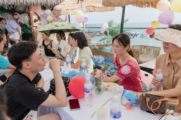湛蓝的海水,热情的海浪,轻轻拂过脸颊的海风,精心装饰的活动现场,处处弥漫着温馨与浪漫。男女嘉宾通过“谁是情歌王”、“背对背拥抱”等环环相扣的游戏,不仅消除了初次相识的拘束感,而且在互相了解的过程中产生了甜蜜的“化学反应”,在一片欢声笑语中,现场气氛被推向了一个又一个高潮。随后,在主持人和“红娘小青”的引导下,男女嘉宾们有序进行“五分钟约会”环节,在坦诚交流中寻觅佳音,在浪漫热烈的氛围中点燃心动火花,最终有2对嘉宾成功牵手。