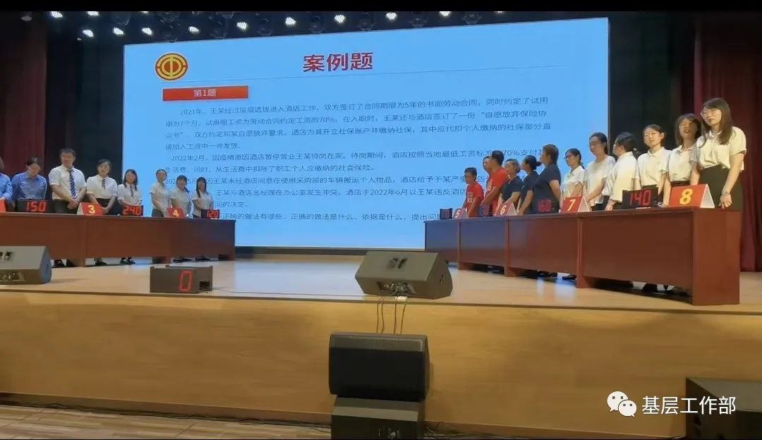 市总工会对竞赛规则进行了科学合理设计,整个环节包括必答题、抢答题、风险题及案例分析题,尤其在案例分析环节,特别邀请3位专家评委,通过两两队伍互相提问,互相补充分析案情,评委分别向两队提问的方式,加强对整个案例的分析掌握,最后,专家评委对每个案例进行全面分析点评,既锻炼了队员随机应变的能力,临场发挥的能力,分析解决问题的能力,又增加了大赛的知识性,达到了基层工会干部知识、能力与技能全面整体提高的目的。