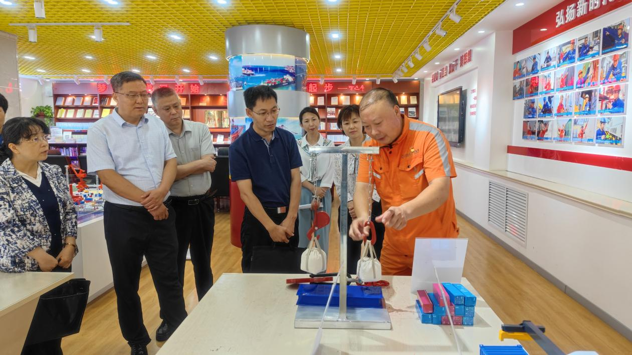调研青岛港大港公司现场,党的十九大代表、全国劳动模范、全国五一劳动奖章获得者,山东港口青岛港大港分公司装卸大队党支部书记、副队长,青岛市总工会兼职副主席皮进军通过实物模型模拟出工作场景,展示了职工技能提升,技术创新构成的青岛港新旧动能转换的“加速度”。