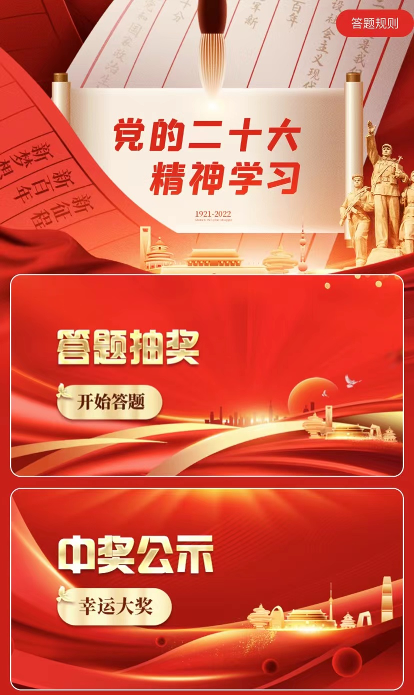 3.单轮答题所有题目答完且为满分,即可获得一次转盘抽奖机会,每人每周最多可获得一次抽奖机会,抽完后本周答题将不再获得抽奖机会,次周周一凌晨0时后可继续进行下一轮答题抽奖。